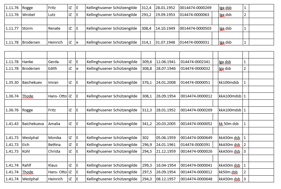 | LG offene Kl | SV Kiel | 1222,8 | 1 |