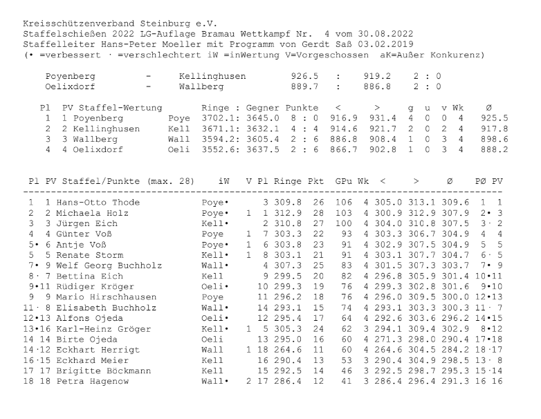 Ergebnisse Staffelschießen LGA Auflage Stör